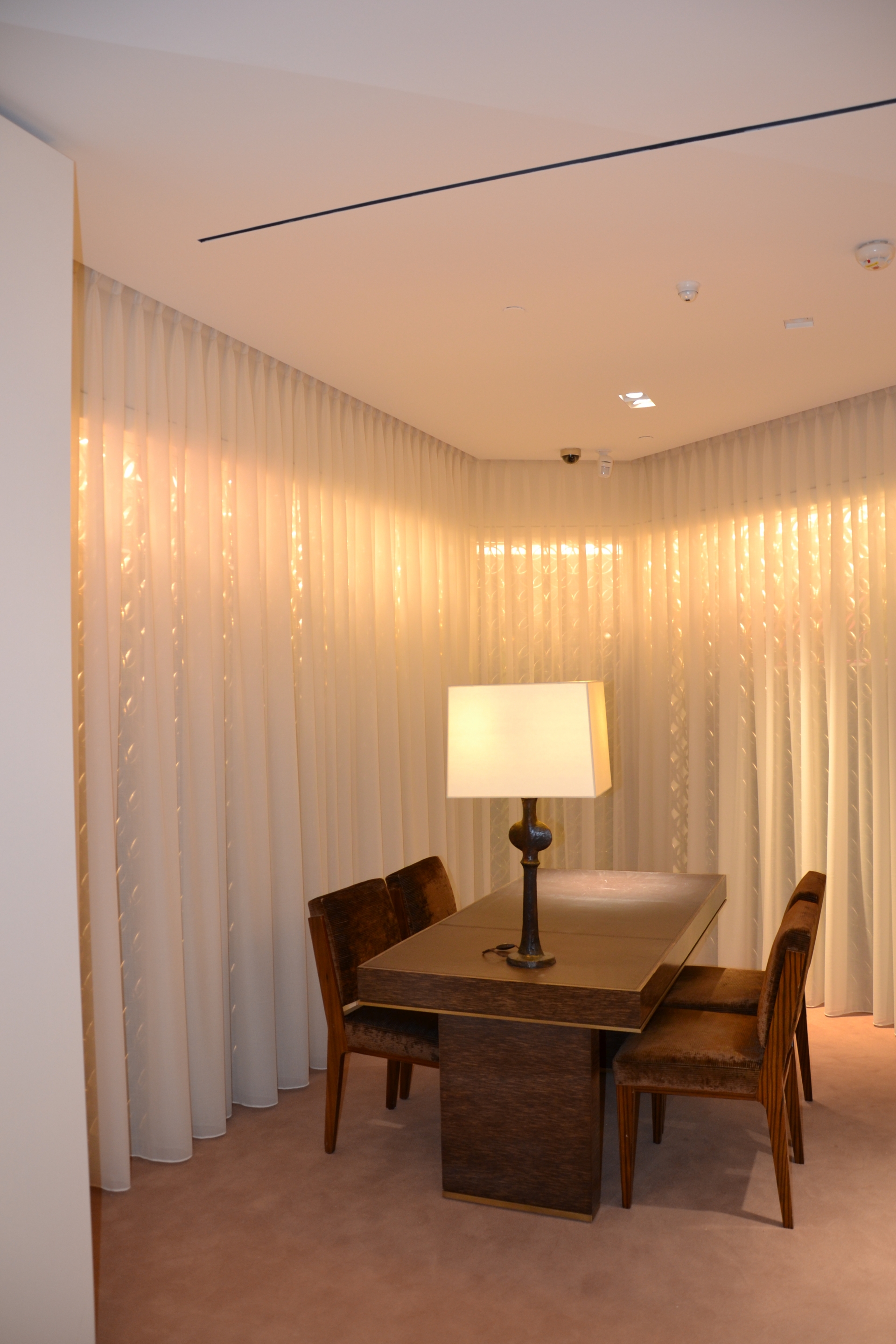 Confection et installation de rideaux et voilages en tête flamande sur tringle cintré ou avec retour.