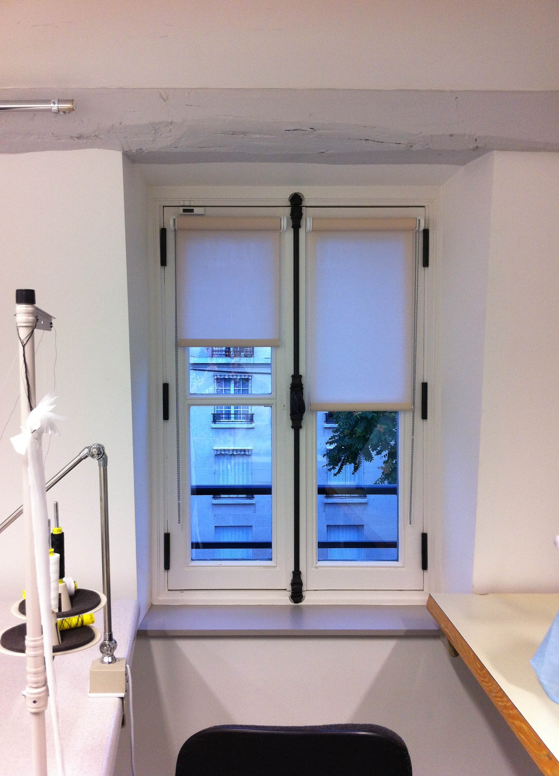 Confection et installation de stores enrouleurs pour les ateliers de couture et les bureaux.