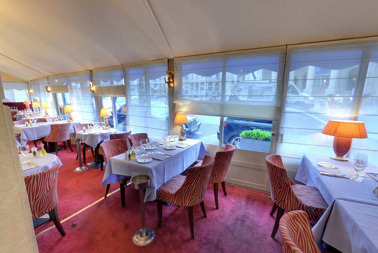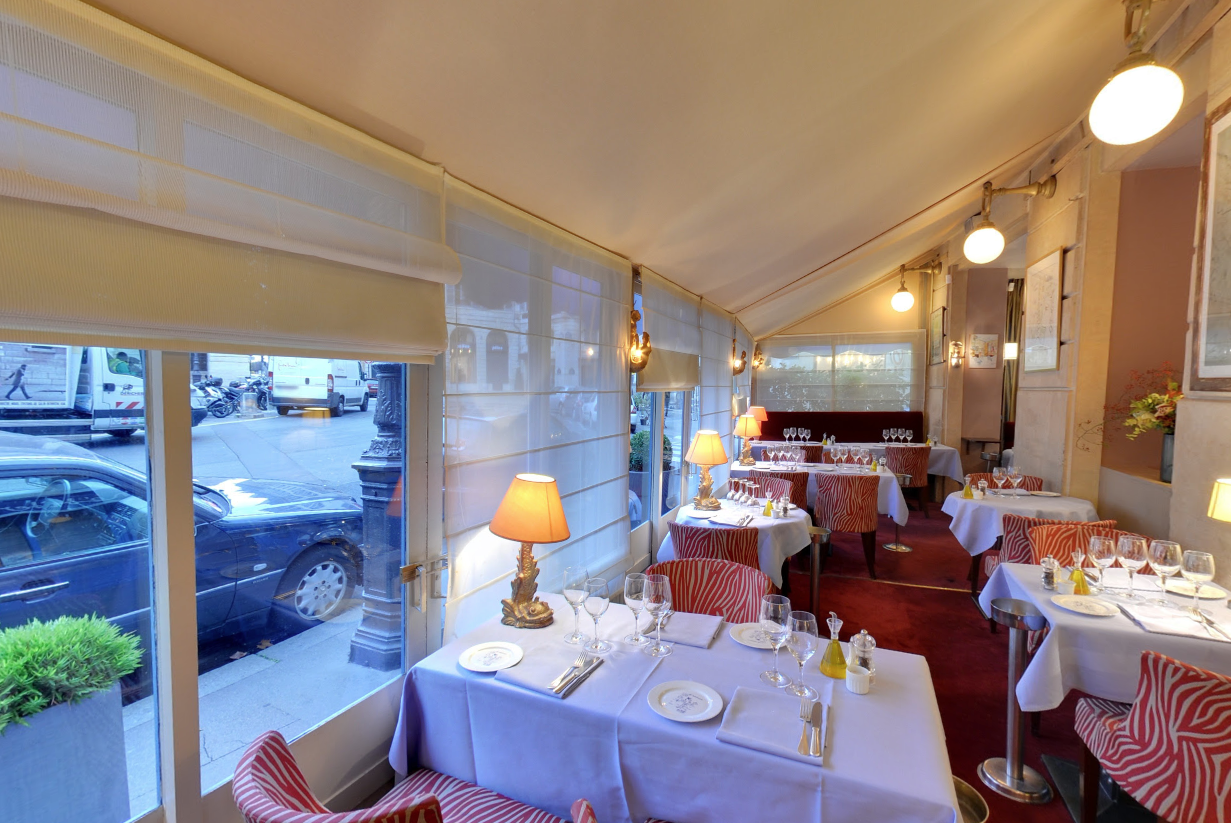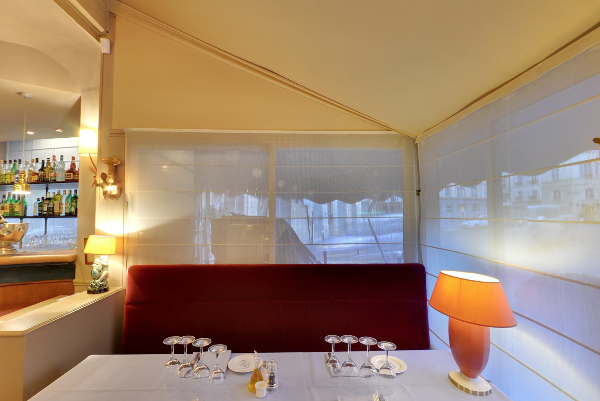 Confection et installation de stores américains pour «La Méditérranée» situé à proximité des jardins du Luxembourg, du Sénat, et offrant une vue remarquable sur le théâtre de l’Odéon.